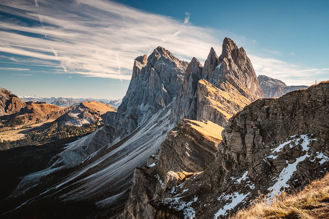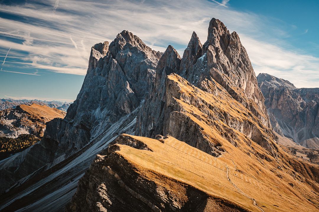 L’automne dans les Dolomites c’est un spectacle silencieux et puissant. Les montagnes s’embrasent de tons dorés, les forêts se teintent de cuivre et les sommets se détachent dans une lumière presque mystique. Voyager ici à cette saison, c’est marcher entre brume et lumière, solitude et grandeur. Chaque virage révèle un tableau nouveau, chaque lever de soleil une raison de rester un peu plus longtemps.